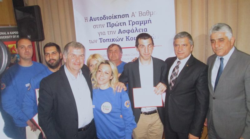 Η Εθελοντική Ομάδα του ΣΠΑΠ βραβεύθηκε από την Κεντρική Ένωση Δήμων Ελλάδας σε Εκδήλωση της ΚΕΔΕ και του Ινστιτούτου Τοπικής Αυτοδιοίκησης για την Παγκόσμια Ημέρα Πολιτικής Προστασίας, στη διάρκεια της οποίας παρουσιάστηκε ο Οδηγός Επιχειρησιακού Σχεδιασμού για τη Διαχείριση Κινδύνων σε επίπεδο Δήμων – Στρατηγικές Δράσεις της ΚΕΔΕ σε θέματα Πολιτικής Προστασίας.
