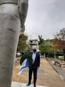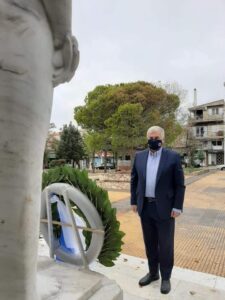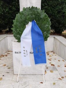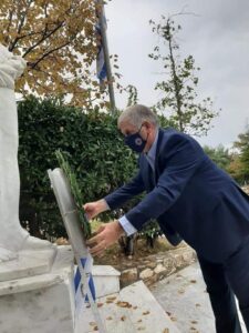 Κατάθεση στεφάνου από τον Πρόεδρο του Σ.Π.Α.Π., Αντιπρόεδρο του Εποπτικού Συμβουλίου και Πρόεδρο της Επιτροπής Πολιτικής Προστασίας της Κ.Ε.Δ.Ε. Βλάσση Σιώμο στην μνήμη των ηρώων κατά τον εορτασμό της 28ης Οκτωβρίου στη Νέα Πεντέλη