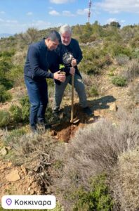 «Βρισκόμαστε, για ακόμη μία φορά, στον Κοκκιναρά Κηφισιάς, συνεχίζοντας την προσπάθεια που έχουμε ξεκινήσει, με την 3η δράση Εθελοντικής Δενδροφύτευσης για τη φυτευτική περίοδο 2026, με σκοπό να αποκαταστήσουμε, να ξαναπρασινίσουμε και να δώσουμε και πάλι ζωή στο βουνό μας, με τη φύτευση πλατύφυλλων φυτών και συγκεκριμένα, κουτσουπιών, πικροδαφνών και χαρουπιών τα οποία είναι κατάλληλα για την περιοχή αυτή και το πιο σημαντικό, διότι είναι πολύ πιο βραδύκαυστα δένδρα.