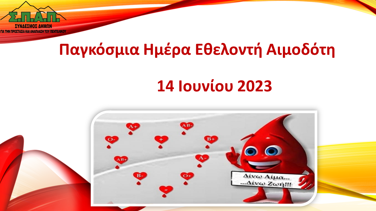 Ο Πρόεδρος του ΣΠΑΠ, Αντιδήμαρχος Πεντέλης, Αντιπρόεδρος της Επιτροπής Πολιτικής Προστασίας και του Εποπτικού Συμβουλίου της ΚΕΔΕ Βλάσσης Σιώμος έδωσε το δικό του μήνυμα για την Παγκόσμια Ημέρα Εθελοντικής Αιμοδοσίας 2023.